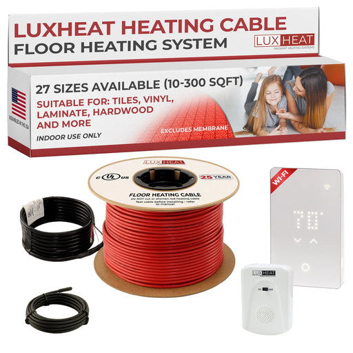 We offer a large range of cable sizes to accommodate all common room sizes, however when selecting your size, it is very important to accurately measure your area. Use our video guide to assist with correctly calculating the heated area for your LuxHeat cable system before choosing your size.