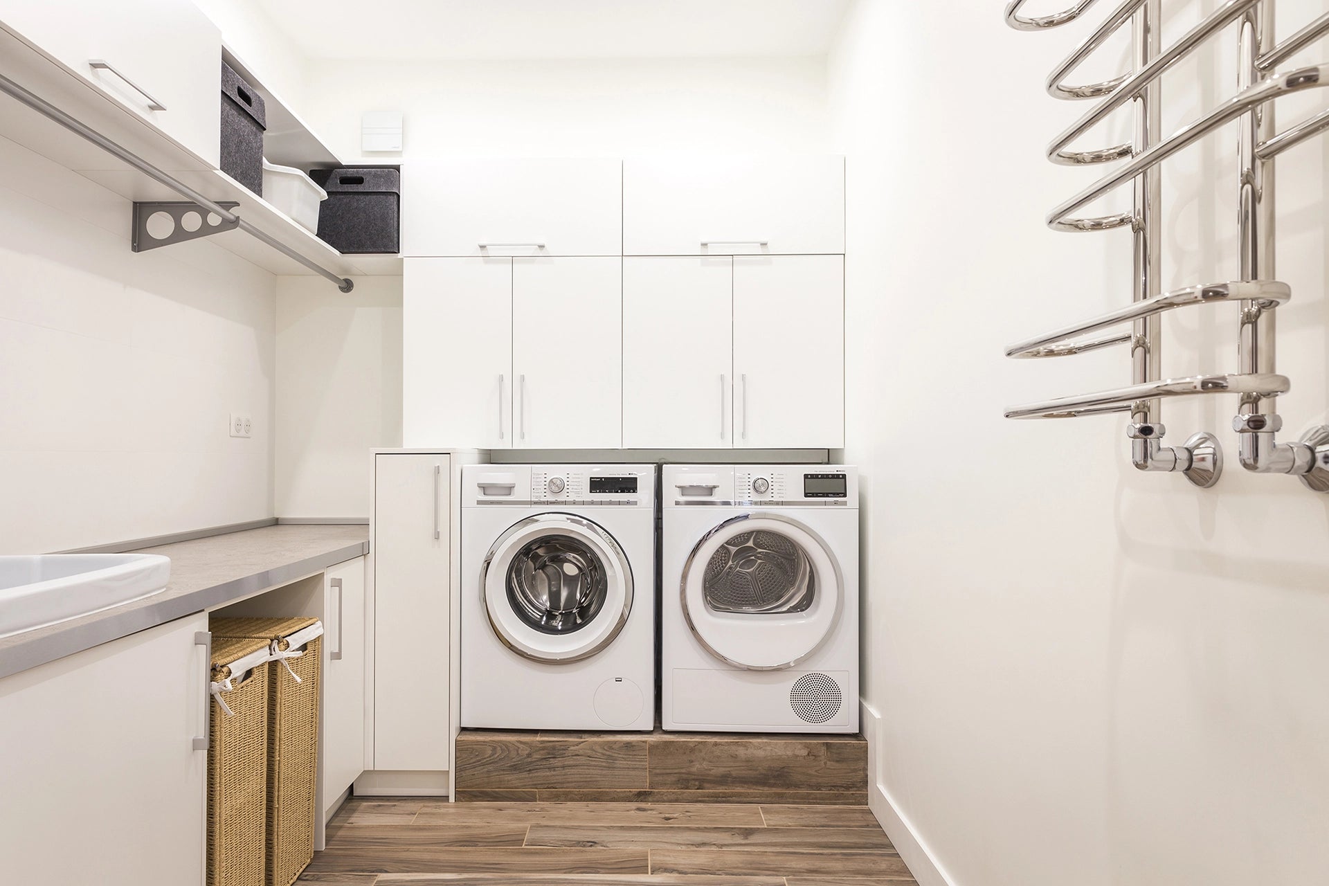 Installing a waterproof laundry room floor from ProLux creates a sealed surface that protects subfloors from water and supports heavy washing machines.